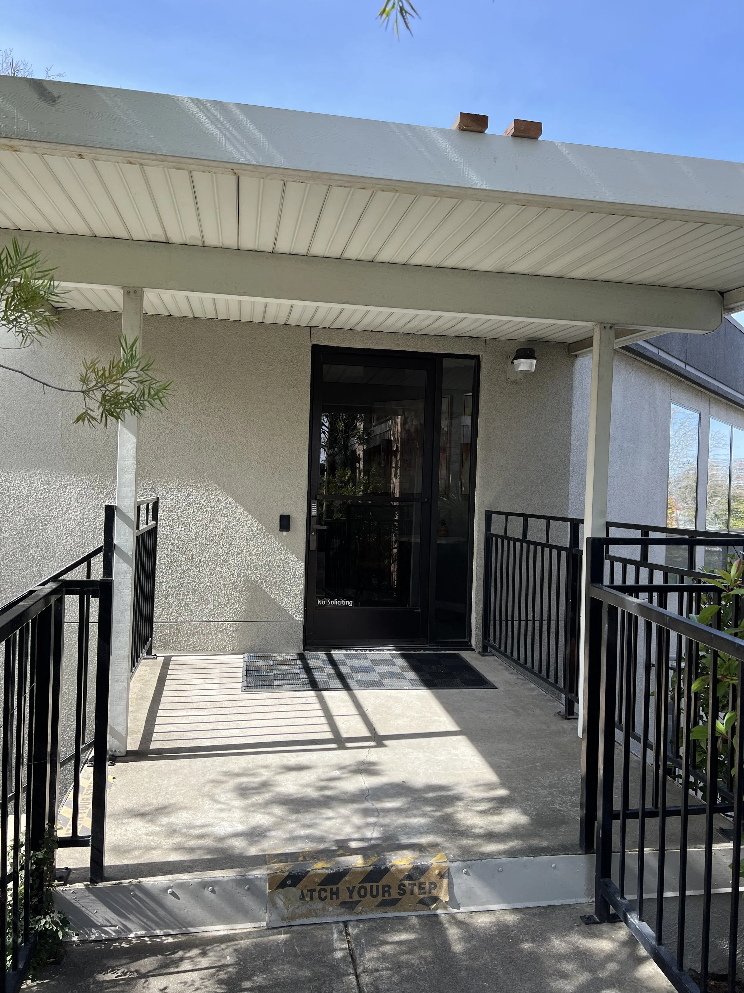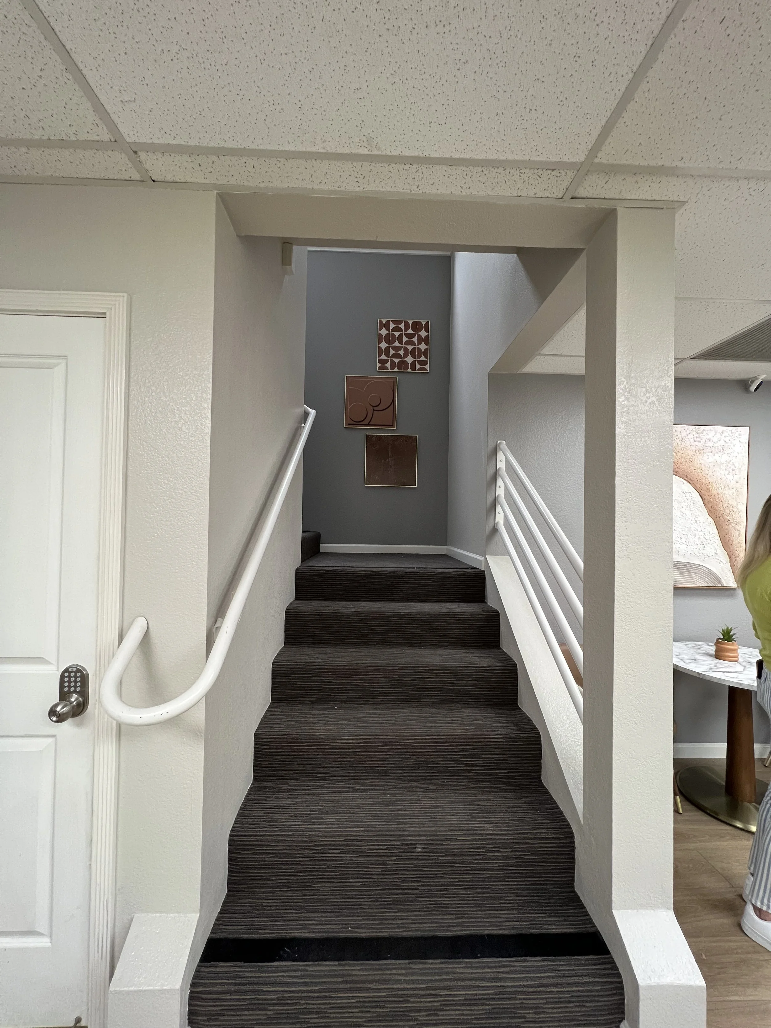 Both entrances require you to walk upstairs, making both entrances not ADA accessible. If you cannot use the stairs or need an ADA-compliant site, please let me know before our session, and I will make arrangements to meet in a downstairs office.